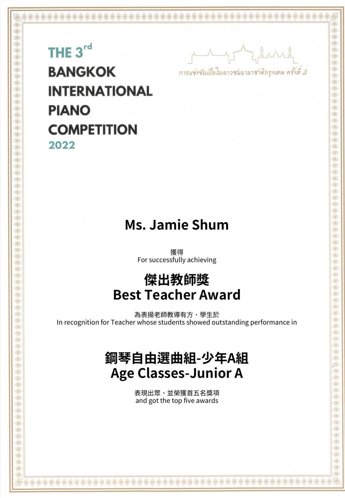 2022 Best Teacher Award from the Bangkok International Piano Competition Published October 23, 2022 at 1110 × 1600 in Students Achievement 2022 Best Teacher Award from the Bangkok International Piano Competition Like Loading...